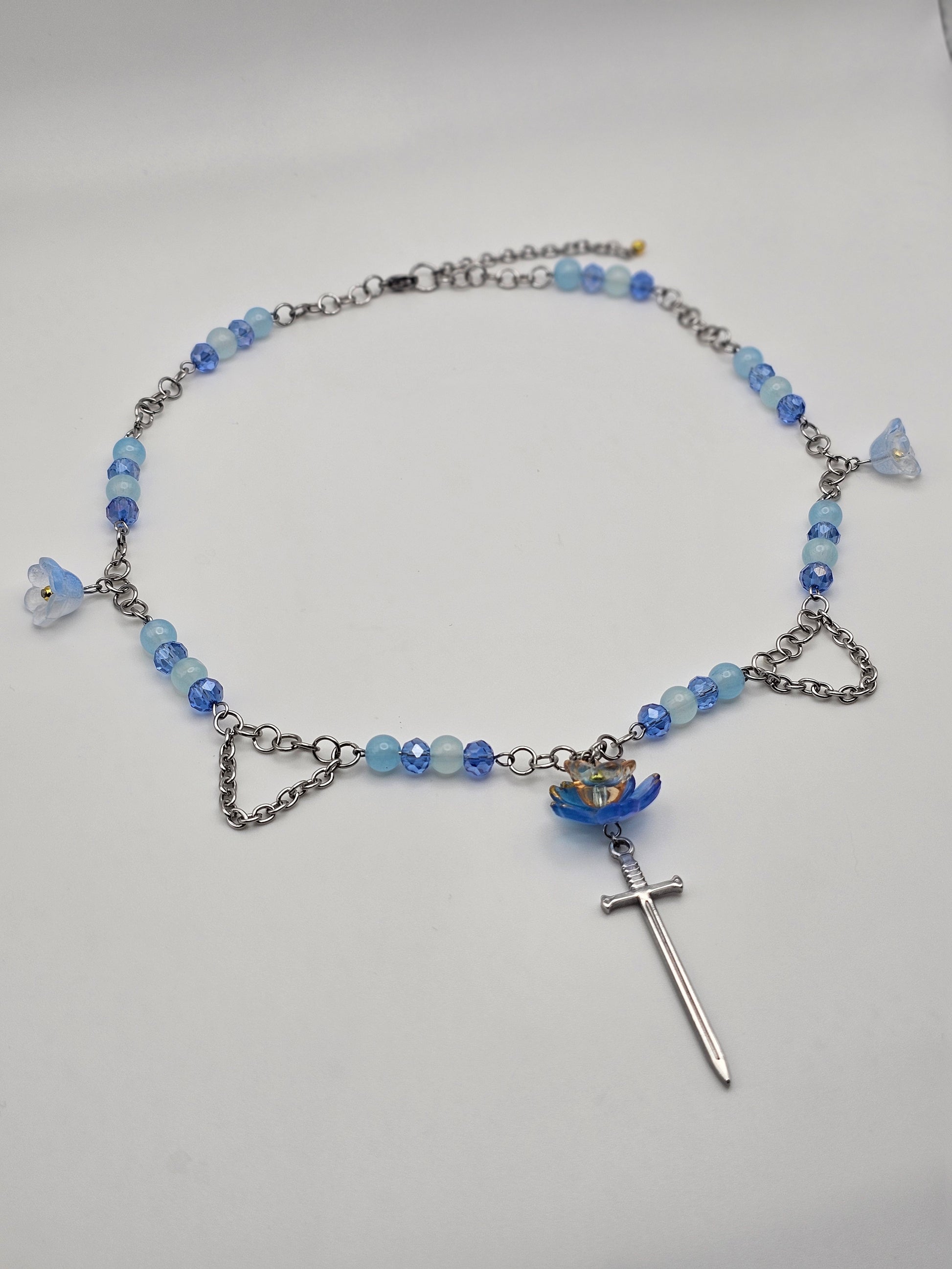 Blue Blossoms and a Blade Necklace